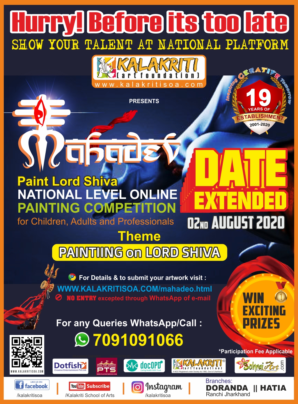Kalakriti Art Foundation is a NGO Registered under Society Act 1860, Govt of Jharkhand. Working for the development of art and culture and social service since 19 years. This is the Platform which aims to provide quality solutions to objectives through the medium of Competition.